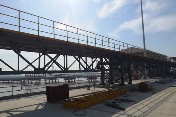 我公司于2018年12月与南通通常港务有限公司签订港口散装物料物流中转项目设备一批,2019年3月15日我公司安装人员已正式进入现场进行安装,为保证业主单位的生产进度及港口卸船机与带式输送机的协同生产,我公司安装人员在现场加班加点,目前现场已初具规模。